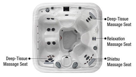 Unieke High Output Therapy (H.O.T.) -zones zorgen voor een maximale waterstroom en dus een maximale intense massage. Er zijn verschillende zitplaatsen met een H.O.T.-zone, voor elk een andere spiergroep.
